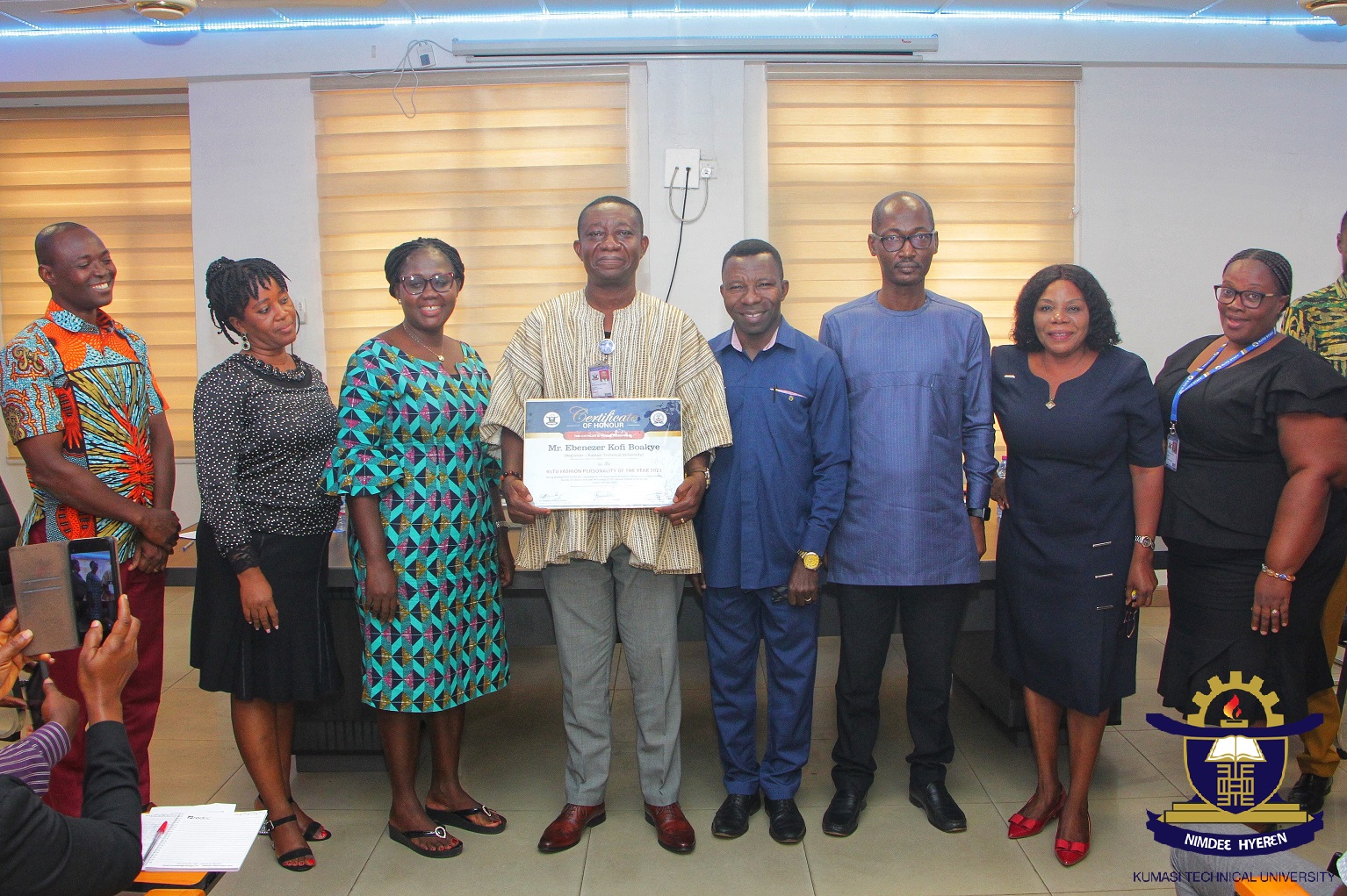 In a celebration of style and elegance, Kumasi Technical University (KsTU) has proudly recognized Mr. Ebenezer Kofi Boakye, the esteemed Registrar, as the Fashion Personality of the Year 2023. The accolade comes as a tribute to Mr. Boakye's remarkable sense of dressing and grooming, marking him as a distinguished example of sartorial. The honour, bestowed by the Department of Fashion Design and Textiles Studies, recognizes Mr. Boakye's exceptional flair for fashion, impeccable grooming, and style that radiates elegance and professionalism.